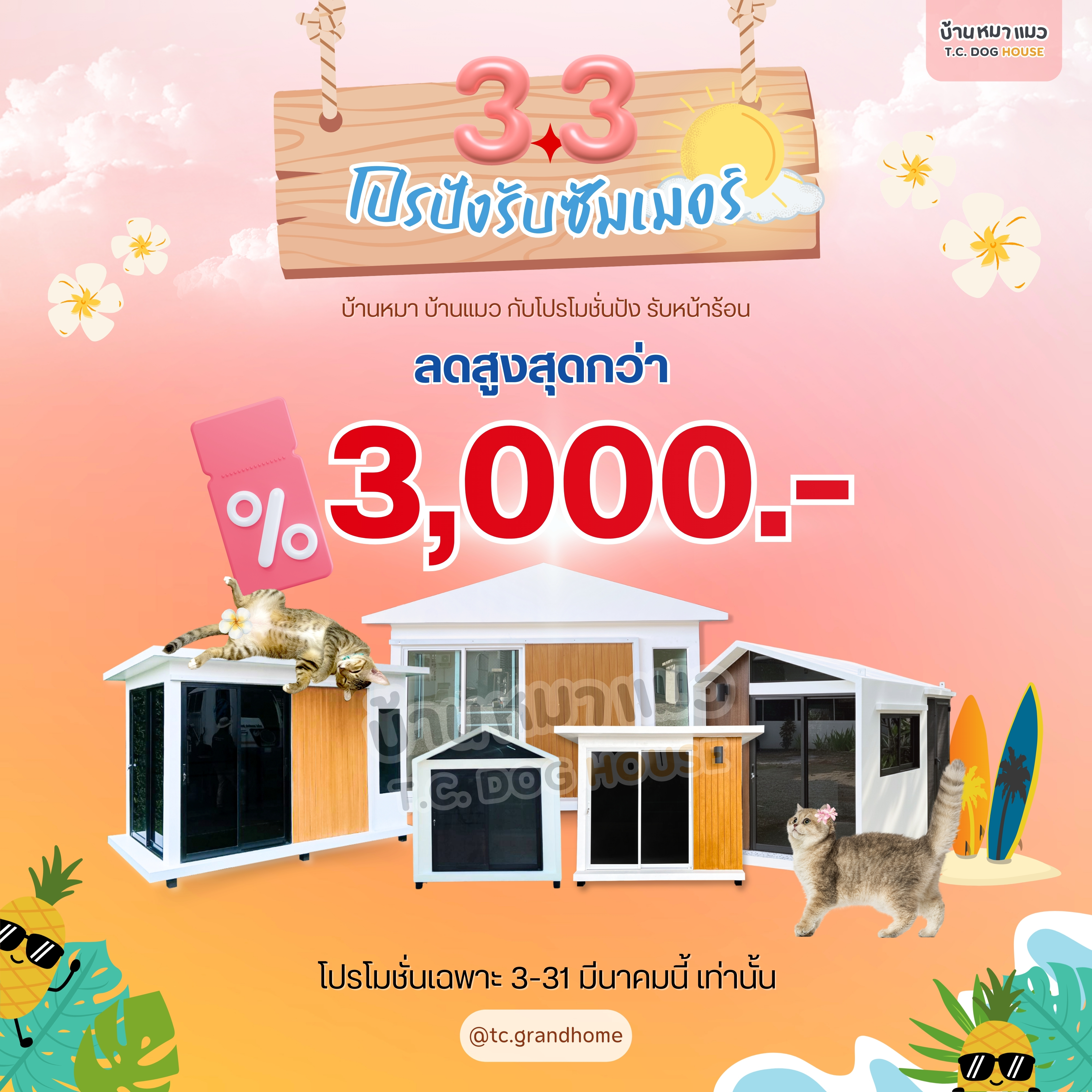 T.C. Dog House จัดโปรเด็ดต้อนรับหน้าร้อน “3.3 Summer Sale” ให้คุณเนรมิตมุมส่วนตัวให้เจ้าตัวเล็กได้ฟินสุดๆ กับบ้านสัตว์เลี้ยงดีไซน์สวย สบาย เหมือนอยู่รีสอร์ตส่วนตัว